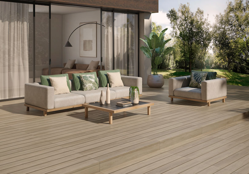 “While wood-effect tiles continue to be popular, 2026 will welcome a more refined style of slimline, contemporary profiles compared to larger format, rustic options, that offer a contemporary interpretation of natural timber. Perfect for terraces, pool surrounds and outdoor dining areas, these elegant planks replicate the grain, warmth and variation of real wood while delivering the technical advantages of porcelain.”