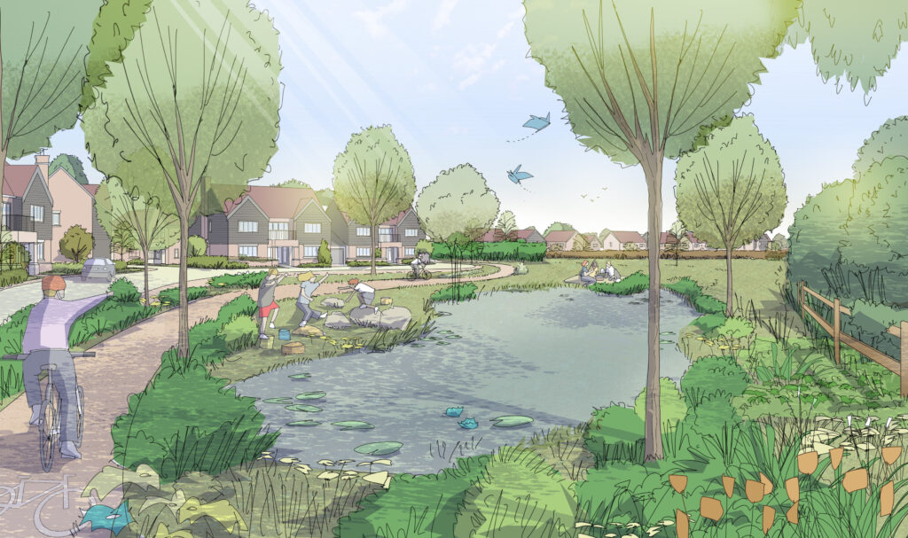Designed to foster a strong connection with the natural environment, the development will feature extensive green and community spaces. These include woodland walks, pastoral meadows, and ponds that will provide wetland habitats, contributing to an overall biodiversity net gain of at least 10 percent. Children’s play areas and a community orchard will encourage outdoor activity, while new walking and cycling routes lined with edible hedges will promote healthy and active lifestyles. Existing trees and hedgerows will be retained wherever possible, creating a green setting that supports both people and wildlife.