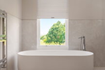 By working closely with the architects, a smart solution was designed for the corner-glazed balcony areas in the bedrooms, incorporating a mirrored central post to house the guide profiles. Some shutters also have built-in perforated sections to allow light to percolate through.
