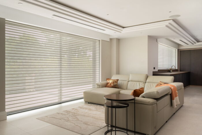 As the Equilux shutters were connected to the BMS of the house, this gives the ability to close all shutters on a house at the touch of a button, and the light sensors built into the side profiles ensures that if an object is blocking the travel of the shutter, that specific shutter would automatically stop, to make sure nothing is damaged.