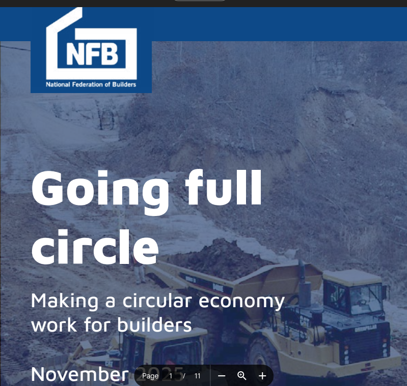 The National Federation of Builders (NFB) has released a short report titled, ‘Going full circle: Making a circular economy work for builders’, which compares how other nations deal with waste in construction and makes eight recommendations for the UK Government to move toward and enable a circular economy.