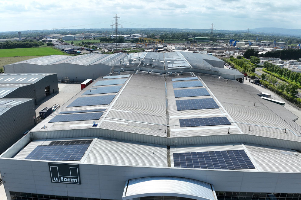 Uform is proud to announce the completion of a large-scale rooftop solar installation at its 225,000 sq ft manufacturing and distribution facility in Toomebridge, Northern Ireland. Delivered in partnership with Ireland’s leading industrial decarbonisation specialist, Astatine, and PV Solar experts Premier Electrical Group, this milestone project underscores Uform’s ongoing commitment to sustainable manufacturing and environmental responsibility.